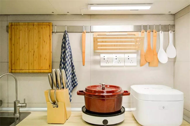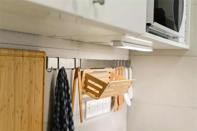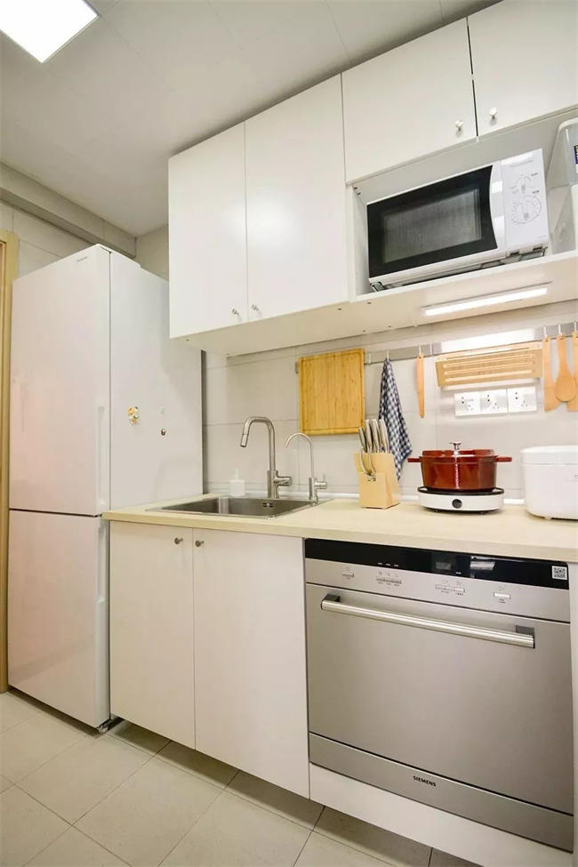 ▲ 廚房面積較小,用白色來裝飾營造一種明亮開闊的視覺效果。