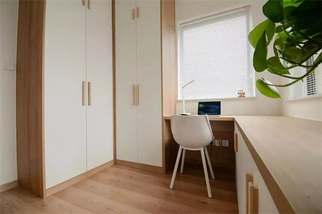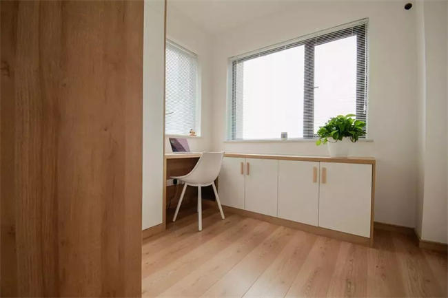 ▲ 書房書桌的設計在窗戶邊,保證了采光的充足,百葉簾設計超級好看。
