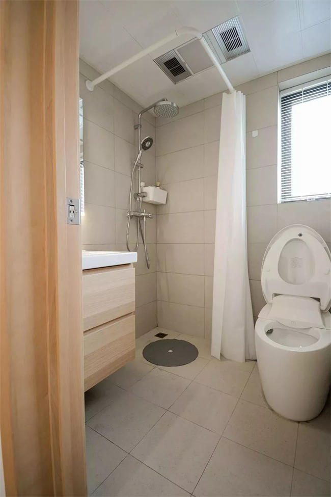 ▲ 浴簾是最簡單的干濕分離設計,最經(jīng)濟實惠,但是要注意下水坡度的設計。