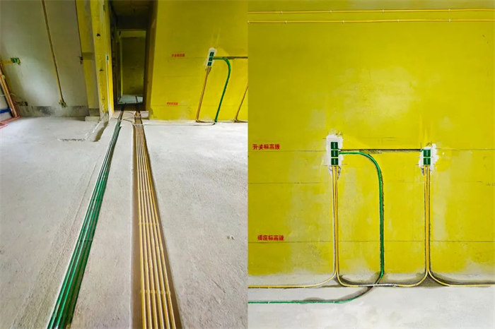 △水管排布感觀橫平豎直,墻體線槽內(nèi)給水管只能用整管,不允許用直接連接,合格。
