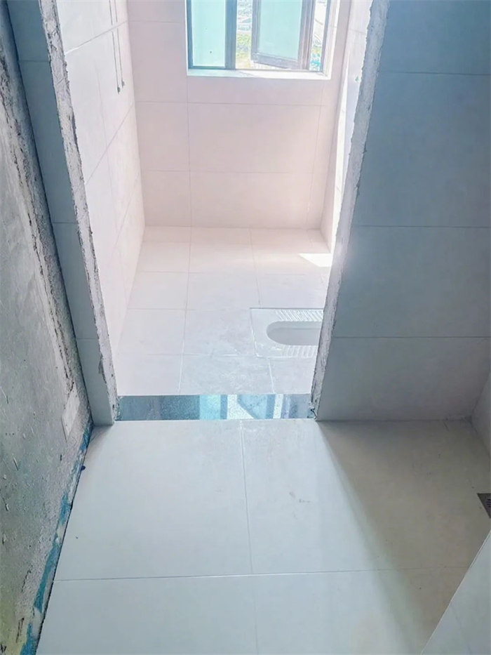 △衛(wèi)生間防水涂層均勻覆蓋在地面,施工無漏刷破損。